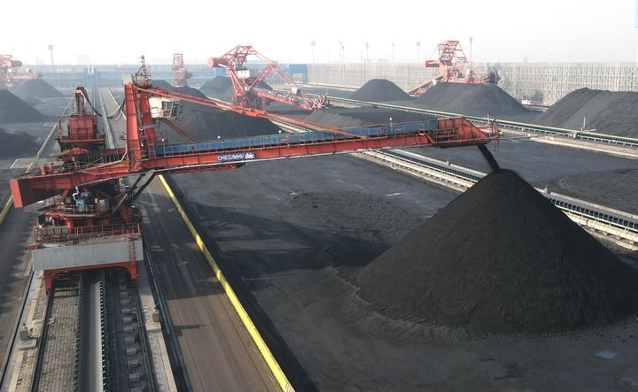 河北黃驊港煤炭堆場轉(zhuǎn)運設(shè)備在作業(yè)(2023年1月8日攝,無人機照片)。