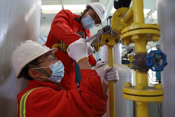 廣東管道高欄港分輸站員工對站內(nèi)設(shè)備進(jìn)行檢查。