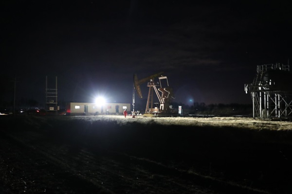 夜幕降臨,科爾沁的溫度急劇下降,蔡會強(qiáng)簡單吃過晚飯后,又開始夜巡,井場的周邊沒有一絲光亮,夜巡需要更加細(xì)致。