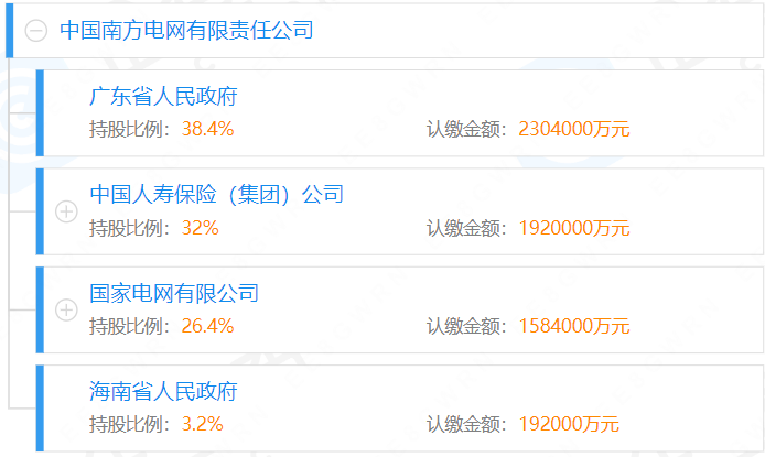 據(jù)媒體2021年12月報(bào)道,完善南方電網(wǎng)股權(quán)結(jié)構(gòu)推動高質(zhì)量發(fā)展專題會議在深圳召開,南方電網(wǎng)股權(quán)結(jié)構(gòu)調(diào)整為國務(wù)院國資委持股51%、廣東省人民政府持股25.57%、中國人壽保險(xiǎn)(集團(tuán))公司持股21.3%、海南省人民政府持股2.13%。