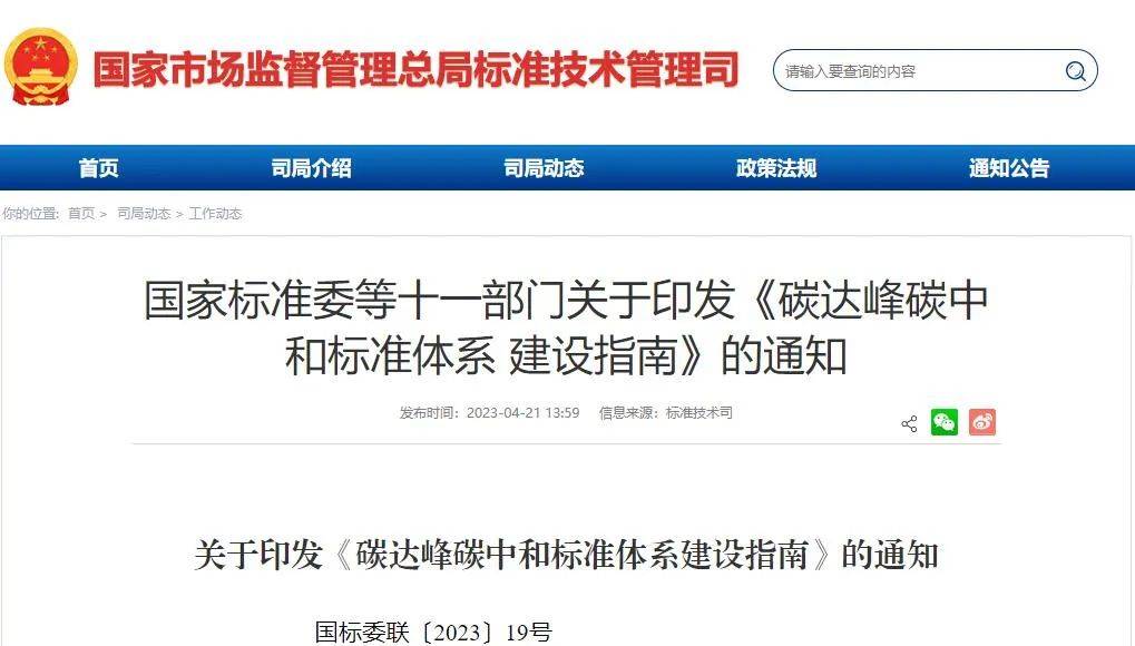 《碳達峰碳中和標(biāo)準(zhǔn)體系建設(shè)指南》已經(jīng)2023年2月6日國務(wù)院標(biāo)準(zhǔn)化協(xié)調(diào)推進部際聯(lián)席會議全體會議通過,現(xiàn)印發(fā)給你們,請結(jié)合實際認真貫徹落實。
