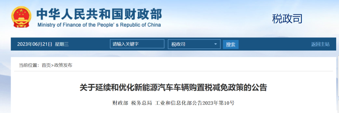 6月20日,財(cái)政部、稅務(wù)總局、工信部發(fā)布《關(guān)于延續(xù)和優(yōu)化新能源汽車車輛購(gòu)置稅減免政策的公告》(以下簡(jiǎn)稱《公告》)。
