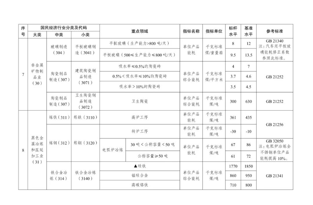結(jié)合工業(yè)重點(diǎn)領(lǐng)域產(chǎn)品能耗、規(guī)模體量、技術(shù)現(xiàn)狀和改造潛力等,進(jìn)一步拓展能效約束領(lǐng)域。在此前明確煉油、煤制焦炭、煤制甲醇、煤制烯烴、煤制乙二醇、燒堿、純堿、電石、乙烯、對(duì)二甲苯、黃磷、合成氨、磷酸一銨、磷酸二銨、水泥熟料、平板玻璃、建筑陶瓷、衛(wèi)生陶瓷、煉鐵、煉鋼、鐵合金冶煉、銅冶煉、鉛冶煉、鋅冶煉、電解鋁等25個(gè)重點(diǎn)領(lǐng)域能效標(biāo)桿水平和基準(zhǔn)水平的基礎(chǔ)上,增加乙二醇,尿素,鈦白粉,聚氯乙烯,精對(duì)苯二甲酸,子午線輪胎,工業(yè)硅,衛(wèi)生紙?jiān)?、紙巾原紙,棉、化纖及混紡機(jī)織物,針織物、紗線,粘膠短纖維等11個(gè)領(lǐng)域,進(jìn)一步擴(kuò)大工業(yè)重點(diǎn)領(lǐng)域節(jié)能降碳改造升級(jí)范圍。