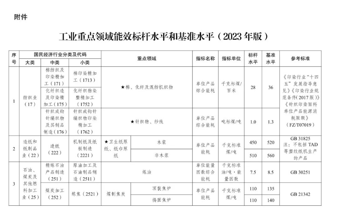 附件:工業(yè)重點(diǎn)領(lǐng)域能效標(biāo)桿水平和基準(zhǔn)水平(2023年版)