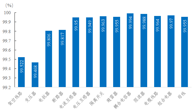 圖8 2022年十三類輸變電設(shè)施可用系數(shù)