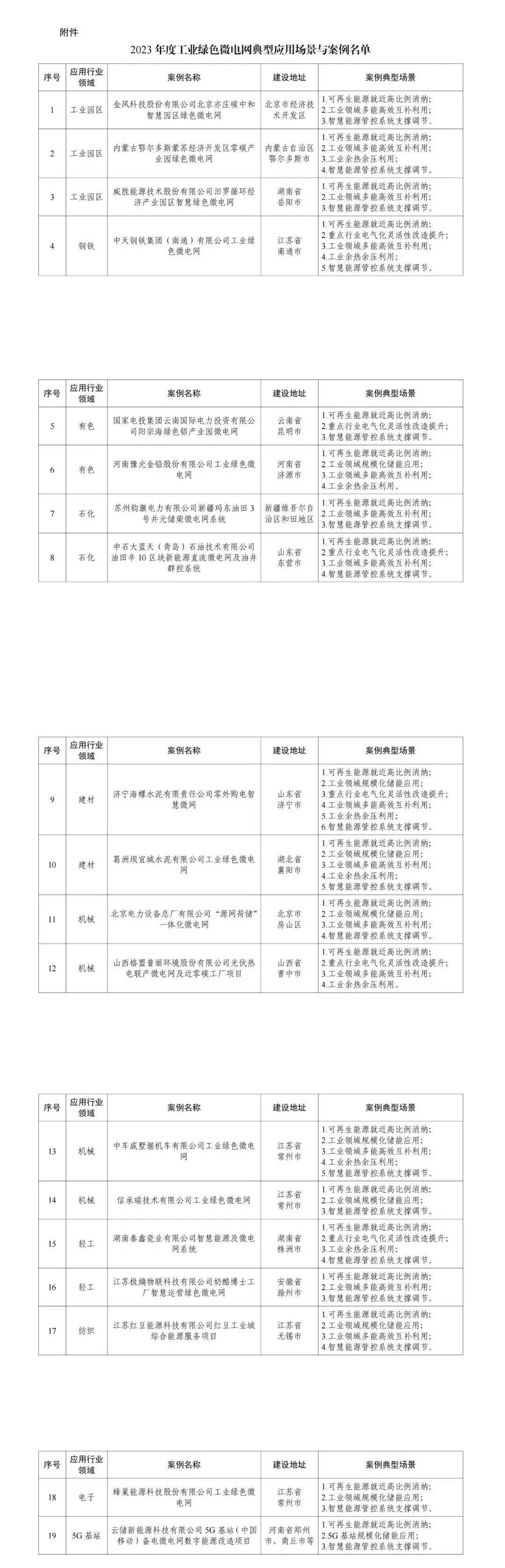 2023年度工業(yè)綠色微電網(wǎng)典型應用場景與案例名單公示