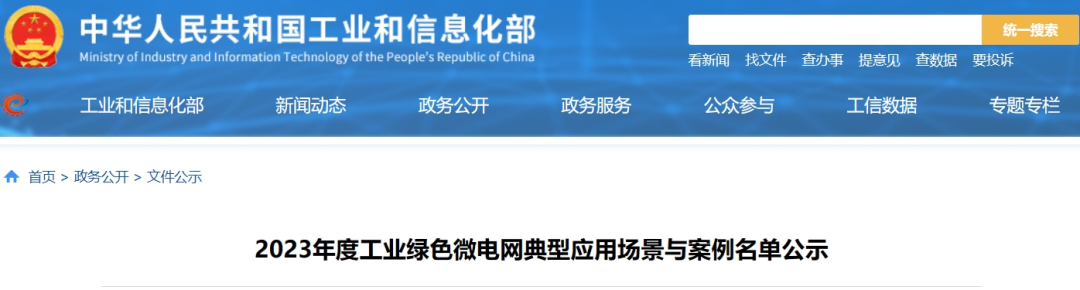 12月14日,工信部公示2023年度工業(yè)綠色微電網(wǎng)典型應用場景與案例名單。