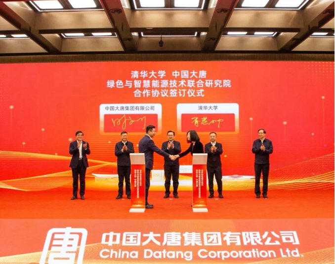 張國華、鄒磊、俞培根、趙大春、姜培學(xué)共同為中國大唐集團科技創(chuàng)新有限公司、中國大唐集團數(shù)字科技有限公司揭牌,清華大學(xué)、中國大唐簽署了《清華大學(xué)、中國大唐集團有限公司綠色與智慧能源技術(shù)聯(lián)合研究院合作協(xié)議》。