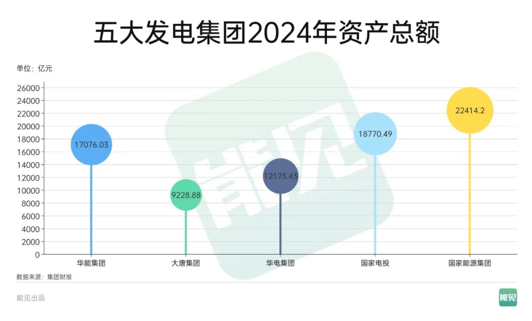 經(jīng)「能見」梳理,2024年五大發(fā)電集團(tuán)總營收達(dá)21536.38億元,較上年減少近141億元;凈利潤為2179.92億元,同比增長16.39%;利潤總額為2871.48億元;資產(chǎn)總額合計(jì)79665.03億元,即將突破8萬億元。
