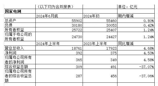 電力網(wǎng)公眾號(hào)曾在2024年9月1日發(fā)表《兩大電網(wǎng)2024年上半年賺多少?》一文,國家電網(wǎng)2024年上半年收入18761億元,去年同期17923億元,同比增長(zhǎng)4.68%;凈利潤(rùn)392億元,去年同期375億元,同比增4.53%