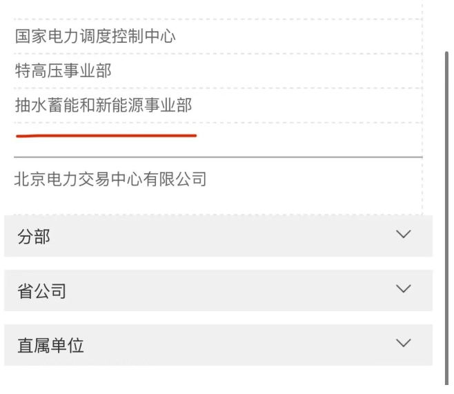 另根據(jù)小編查詢,目前國(guó)家電網(wǎng)公司網(wǎng)站組織機(jī)構(gòu)一欄中尚未顯示抽蓄事業(yè)部,仍然顯示“抽水蓄能與新能源事業(yè)部”。