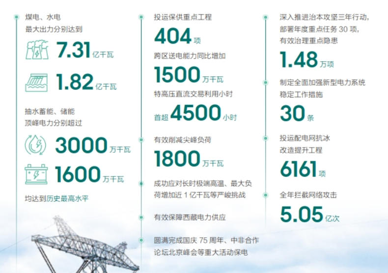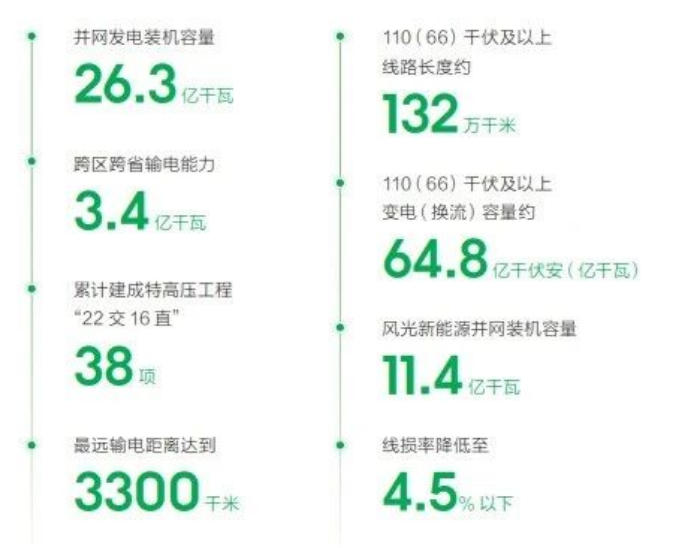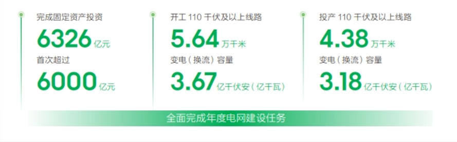 2024年完成固定資產(chǎn)投資6326億元,達(dá)成營(yíng)業(yè)收入3.95萬(wàn)億元;全年售電量6.24萬(wàn)億千瓦時(shí),市場(chǎng)化交易電量5.02萬(wàn)億千瓦時(shí);并網(wǎng)發(fā)電裝機(jī)容量26.3億千瓦,其中風(fēng)光新能源并網(wǎng)裝機(jī)容量11.4億千瓦;累計(jì)建成特高壓工程“22交16直”38項(xiàng),跨區(qū)跨省輸電能力3.4億千瓦,建成全球技術(shù)水平最高、配置資源能力最強(qiáng)、并網(wǎng)裝機(jī)規(guī)模最大、安全運(yùn)行時(shí)間最長(zhǎng)的交直流混聯(lián)特大型電網(wǎng)。