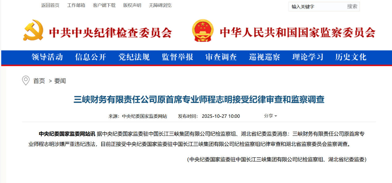 程志明,男,1968年3月出生,湖北松滋人,高級經(jīng)濟師,曾任三峽財務有限責任公司黨委書記、董事長。他畢業(yè)于清華大學水力學及河流動力學專業(yè),長期在三峽集團任職,歷任財務部處長、資本運營部副主任等職,2015年起擔任三峽資本控股公司總經(jīng)理,2020年調(diào)任三峽財務公司。2025年10月27日因涉嫌嚴重違紀違法接受審查調(diào)查。其任職期間涉及三峽集團資本運作與財務管理工作,此前同公司副總經(jīng)理畢家俊也于2024年被查。