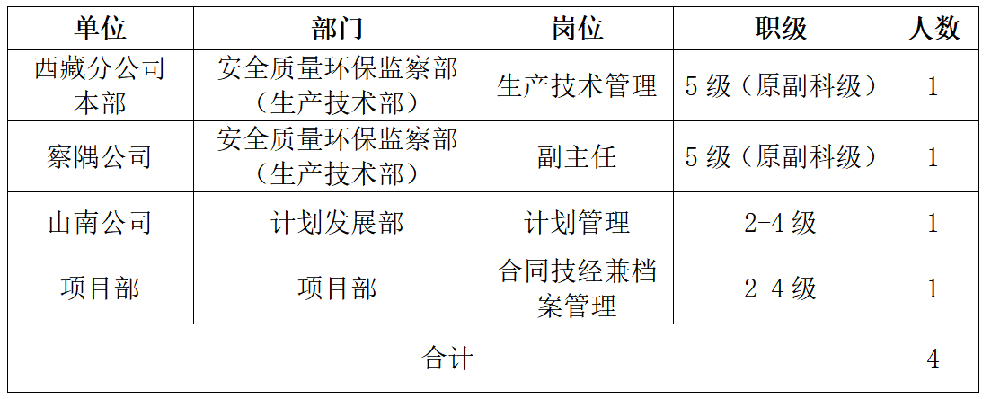 具體見附件1:西藏分公司招聘崗位及任職條件