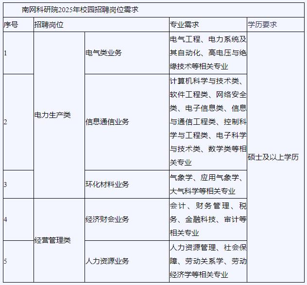 南網(wǎng)科研院2025年校園招聘崗位需求