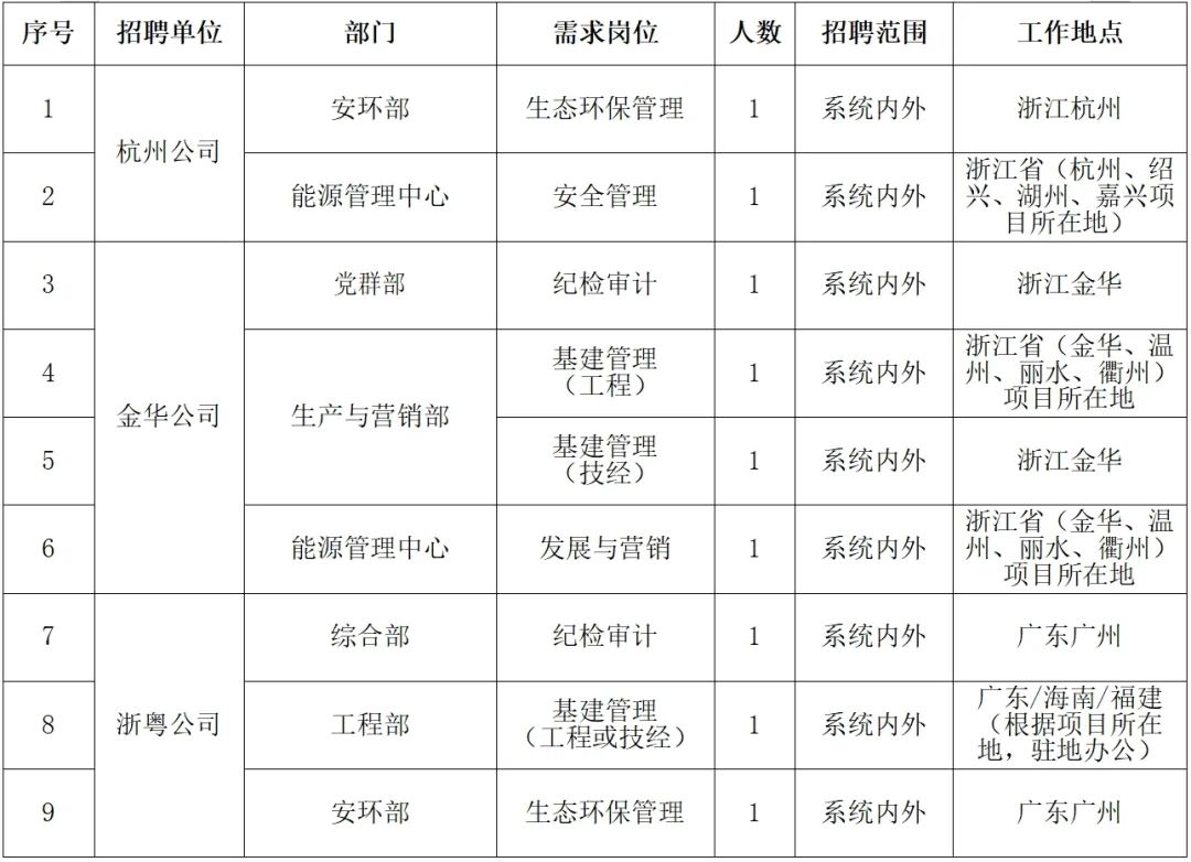 詳見《國家電投集團浙江公司招聘崗位職責及任職條件》(附件1)。