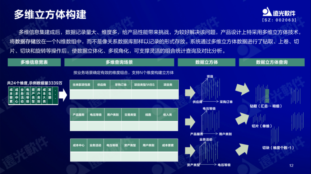 遠(yuǎn)光多維成本管理產(chǎn)品具有多源集成、靈活分?jǐn)?、多維展示、信息隔離四大特性,可支持多數(shù)據(jù)源集成接入構(gòu)成多維信息全集,保障信息集成效率、效果;分?jǐn)傄?guī)則可靈活構(gòu)建、支撐多層分級(jí)管理。此外,多維立方體讓數(shù)據(jù)存儲(chǔ)立體多面化,支持不同維度、多種圖表靈活展示。同時(shí),主分庫(kù)管理也讓信息實(shí)現(xiàn)適度隔離,且不影響主庫(kù)業(yè)務(wù)處理性能。