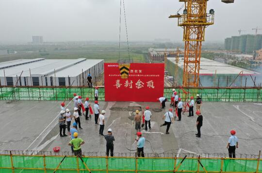 為了確保施工進度,總包方充分利用空閑時間,全員加班加點,在確保質(zhì)量的同時與時間賽跑,最終如期完成生活服務(wù)中心及綜合樓中--九層辦公樓的土建工作,并于7月9日9時9分舉行了封頂儀式。