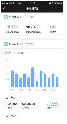 售電公司可在網上營業廳查詢客戶每月實際用電情況,安裝有計量采集系統的客戶還可以查看到每15分鐘一條的實際用電曲線,方便客戶了解自身用電情況,合理安排用電計劃,節省電費開銷。