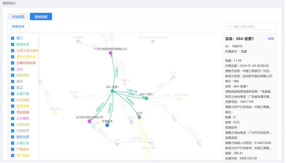 通過(guò)遠(yuǎn)光軟件“知識(shí)圖譜應(yīng)用平臺(tái)”的圖譜構(gòu)建模塊,可以將審單過(guò)程中需要用到的各種實(shí)體融合到一張圖中,非常直觀的定義各類(lèi)實(shí)體間的關(guān)系。再通過(guò)RPA或外部系統(tǒng)提供的數(shù)據(jù)接口,將實(shí)體所對(duì)應(yīng)的具體數(shù)據(jù)導(dǎo)入,從而形成我們審單所需要的各類(lèi)知識(shí)。單據(jù)中包含了哪些信息,哪些需要被重點(diǎn)關(guān)注,在圖中一目了然,真正做到了“哪里不清楚點(diǎn)哪里”。最后,將審單規(guī)則配置到圖譜中,就可以實(shí)現(xiàn)報(bào)銷(xiāo)單的自動(dòng)審核。