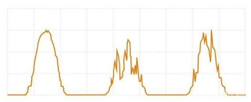 圖2為海外某200MW電站三天的實際發(fā)電曲線,電站采用1.42倍容配比+跟蹤系統(tǒng)設(shè)計。電站逆變器從早上8點(diǎn)到下午5點(diǎn)一直處于滿功率運(yùn)行狀態(tài),相較于圖1,該電站發(fā)電曲線幾乎呈平直狀態(tài),即使光照出現(xiàn)一定程度的波動,逆變器輸出功率也只是出現(xiàn)微小變化,整個電站的輸出更加穩(wěn)定。