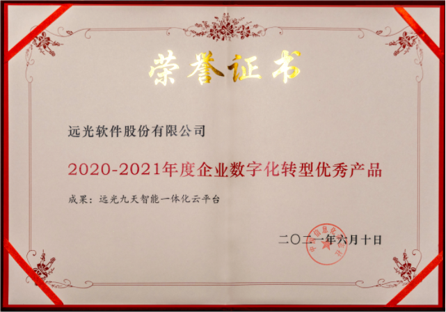 憑借強大的技術(shù)能力、協(xié)同創(chuàng)新能力和潛在應(yīng)用價值,遠(yuǎn)光九天平臺獲得了大會組委、活動評審和眾多企業(yè)、客戶的一致認(rèn)可,獲選“2020-2021年度企業(yè)數(shù)字化轉(zhuǎn)型優(yōu)秀產(chǎn)品”。