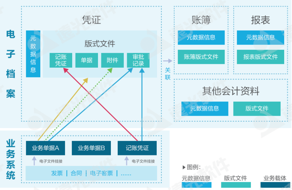 新《會計檔案管理辦法》提出:反映單位職能活動、具有查考和保存價值的電子文件及其元數(shù)據(jù)均應收集、歸檔。遠光智慧檔案涵蓋了全域會計資料,實現(xiàn)檔案“應采盡采,全面電子化” ,在歸檔過程中同步建立了檔案數(shù)據(jù)間的有機聯(lián)系,通過對多源異構(gòu)數(shù)據(jù)的自動匯聚歸檔,使得歸檔后保持檔案的全貌與原貌。