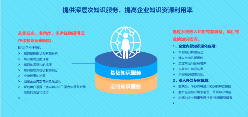 基礎(chǔ)知識(shí)服務(wù),如企業(yè)現(xiàn)狀調(diào)研分析、知識(shí)管理藍(lán)圖規(guī)劃、體系架構(gòu)梳理等。