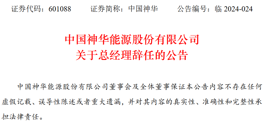 中國(guó)神華于5月31日發(fā)布公告稱,中國(guó)神華能源股份有限公司(“本公司”)董事會(huì)于 2024 年 5 月 30 日收到呂志韌先生遞交的書(shū)面辭呈。