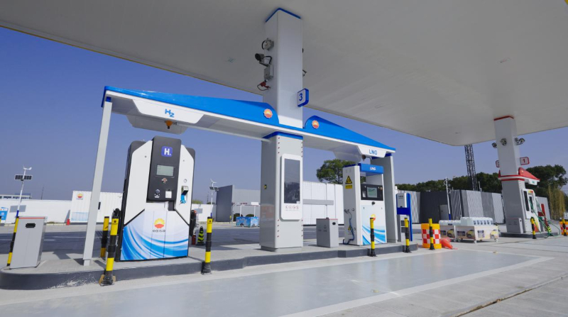 在站內大型車輛加能區(qū),加柴油、加氣、加氫一個都不能少