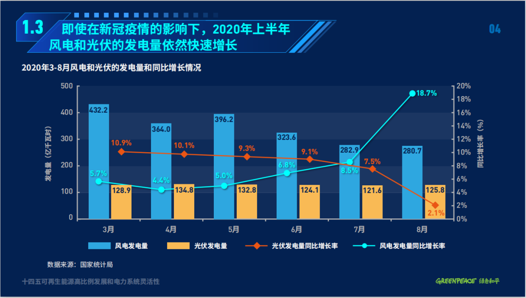 截至2019年底,全國非化石能源發(fā)電量為2.39萬億千瓦時(shí),占全國發(fā)電量的32.6%,實(shí)現(xiàn)2030年非化石能源發(fā)電量占比50%的目標(biāo)已過半程。而即使是在2020年新冠疫情的壓力下,中央政府也沒有松懈綠色復(fù)蘇和轉(zhuǎn)型的決心,今年上半年風(fēng)電和光伏的發(fā)電量分別同比逆勢(shì)增長了6.8%和9.1%。在已提前實(shí)現(xiàn)了“十三五”可再生能源裝機(jī)目標(biāo)之際,今年6月,國家發(fā)改委和能源局進(jìn)一步提高了目標(biāo),計(jì)劃今年內(nèi)風(fēng)電和光伏發(fā)電裝機(jī)均達(dá)到240吉瓦左右。