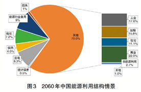 決定碳排放的第二個因素是能源清潔水平,而能源清潔水平是由非化石能源發(fā)展決定的。非化石能源(水、核、風(fēng)、光等)主要以電能形式被利用,到2060年將作為主要的能源品種用于社會生產(chǎn)生活,預(yù)計(jì)將占能源消費(fèi)總量的80%以上(見圖4),客觀上決定了未來以清潔電力為中心的高電氣化能源利用格局,同時也表明電力系統(tǒng)深度脫碳對碳中和目標(biāo)的重要作用。而非完全電氣化部門,例如少數(shù)工業(yè)過程(采礦、鋼鐵、水泥、化工等部分生產(chǎn)環(huán)節(jié))、交通部門(長距離貨運(yùn)、遠(yuǎn)洋航運(yùn)和航空等),盡管生產(chǎn)能耗顯著降低,但部分生產(chǎn)環(huán)節(jié)仍需一定量的化石能源,難以實(shí)現(xiàn)完全脫碳,意味著仍會有一定數(shù)量的與能源相關(guān)的二氧化碳排放。這部分二氧化碳需要由碳匯來中和。碳匯主要包括自然碳匯(自然生態(tài)系統(tǒng)固碳)和技術(shù)碳匯(碳捕獲與儲存技術(shù),CCS)。2016年我國森林碳匯達(dá)到每年5-6億噸水平;有研究顯示,2010-2016年中國陸地生態(tài)系統(tǒng)碳匯年均11.1±3.8億噸,未來自然碳匯會小幅增加但很難實(shí)現(xiàn)翻倍增長。預(yù)計(jì)2060年我國能源相關(guān)碳排放降至14億噸,若加上非能源類碳排放,無法完全依靠自然碳匯實(shí)現(xiàn)碳中和,還需發(fā)展技術(shù)碳匯。