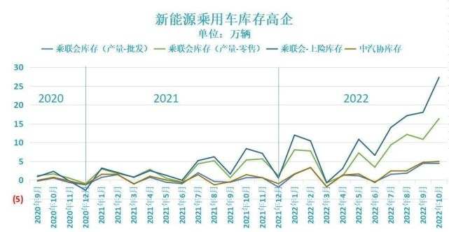 《電動汽車觀察家》統(tǒng)計了幾個數(shù)據(jù)來源的新能源乘用車產(chǎn)銷量。如果以乘聯(lián)會統(tǒng)計的產(chǎn)量,減去最終上險數(shù)來計算一個寬口徑的庫存,那么截至10月,今年以來中國車市已經(jīng)形成了118.23萬輛庫存。