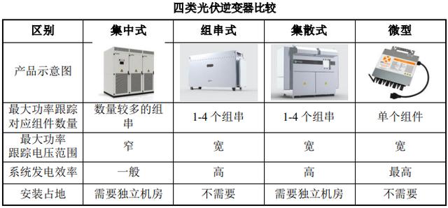 根據(jù)不同功率,光伏逆變器可分為集中式逆變器、組串式逆變器、集散式逆變器及微型逆變器,主要區(qū)別在于逆變器單體容量以及直接與其連接的光伏組件數(shù)量的不同,同時也具有不同的下游應用場景。集中式逆變器是將并行的光伏組串連接到同一臺集中逆變器的直流輸入端,進行最大功率峰值跟蹤后,經(jīng)過逆變并入電網(wǎng)。集中式光伏逆變器的單體容量通常在 500kW 以上,主要適用于光照均勻的集中性地面大型廠房、電站等;組串式光伏逆變器是對 1-4 組光伏組串進