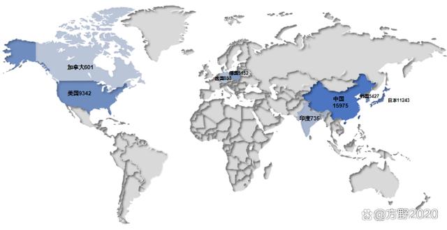 在過去20年間,車用氫能專利區(qū)域分布如圖5所示。中國(guó)、日本和美國(guó)在車用氫能技術(shù)領(lǐng)域擁有較高的專利申請(qǐng)量,是當(dāng)前全球范圍內(nèi)較有技術(shù)競(jìng)爭(zhēng)力和市場(chǎng)競(jìng)爭(zhēng)力的地區(qū)國(guó)家。