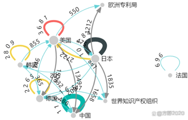 從全球車用氫能技術(shù)流向來看,美國(guó)、日本、德國(guó)和韓國(guó)為主要技術(shù)輸出國(guó),技術(shù)自主創(chuàng)新性較強(qiáng),具有較強(qiáng)的研發(fā)實(shí)力和市場(chǎng)、技術(shù)控制力;中國(guó)、美國(guó)、日本和歐洲地區(qū)為主要的技術(shù)輸入目標(biāo)國(guó),尤其是中國(guó),具有較大的市場(chǎng)空間,是市場(chǎng)爭(zhēng)奪的焦點(diǎn)地區(qū)。