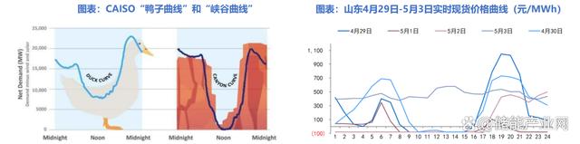國內(nèi)以山東為代表的部分省份同樣有明顯的填谷需求。山東裝機結(jié)構(gòu)與CAISO相似,截至22年底,光伏裝機占比達到22.5%。在2023年五一假期期間,山東省內(nèi)用電負荷下降約15%,引發(fā)連續(xù)負電價現(xiàn)象。值得注意的是,4月29日-5月1日現(xiàn)貨價格曲線形狀類似鴨子曲線,期間10時-15時負電價出現(xiàn)尤為頻繁,而該時段為光伏發(fā)電高峰。
