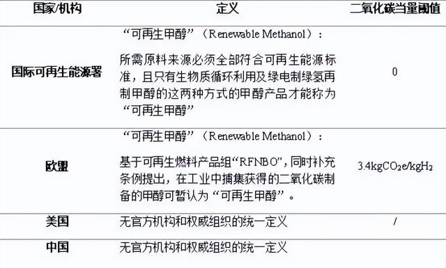 (3)美國(guó)“綠色甲醇”(Green Methanol)定義