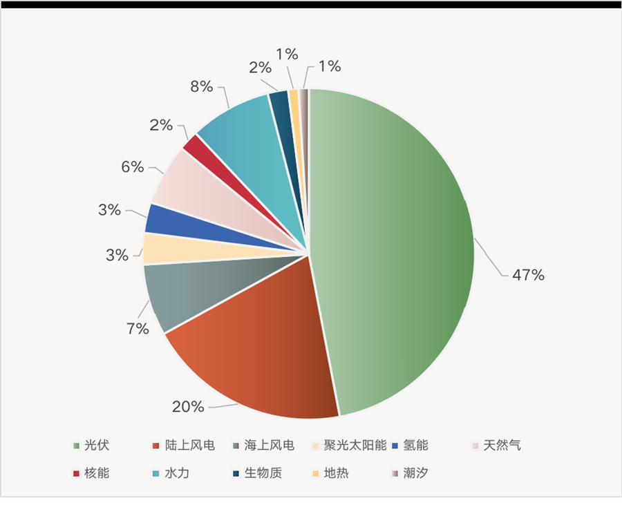 該機構還預測,到2050年,光伏將在全球電力裝機中的占比達到47%,風電占比為27%。