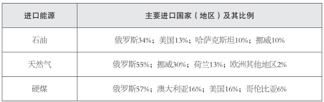 表 2021年德國(guó)化石能源主要進(jìn)口國(guó)家及其占比