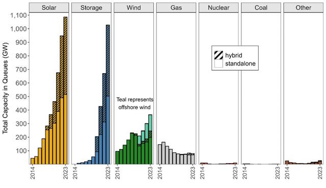 圖:截至2023年底,美國尋求接入電網(wǎng)的能源容量