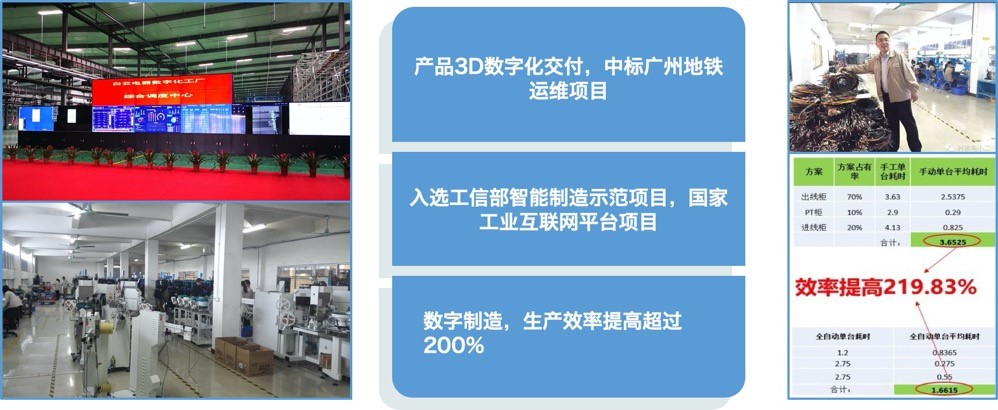 【白云電器】白云和利馳從2000年開始合作,最開始使用的利馳SuperWORKS軟件,白云的數(shù)字化工廠建設(shè)投資非常大,幾個億的投資,其中最關(guān)鍵的兩個工序,線束和母排都采用利馳的解決方案。線束的下線效率、接線的效率提高了219%。更重要的是白云通過和利馳的合作,有了三維模型,有了柜體的三維仿真數(shù)據(jù),廣州地鐵有個配電設(shè)備的維護(hù)平臺,地鐵設(shè)備維護(hù)必須基于BIM模型,白云的電氣設(shè)備三維模型可以輕松轉(zhuǎn)化為BIM模型,在這方面利馳給白云做了大量的支持,基于此白云就可以承接廣州地鐵售后維護(hù)的項目。白云電器通過做數(shù)字化已經(jīng)實現(xiàn)了制造競爭力很強(qiáng),運維服務(wù)競爭力更強(qiáng)。