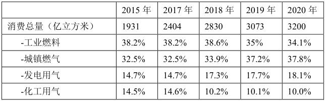 中國天然氣消費(fèi)結(jié)構(gòu)