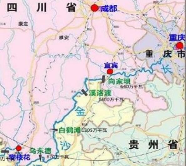 ▲ 四川長(zhǎng)江-金沙江段修建了四座世界級(jí)的水電站:向家壩、溪洛渡、白鶴灘、烏東德。這四座水電站裝機(jī)總?cè)萘窟_(dá)46508MW,為三峽水電站裝機(jī)容量22500 MW的46508/22500=2.07倍。