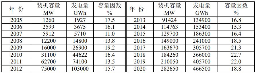風(fēng)電場裝機(jī)容量(單位:GW)