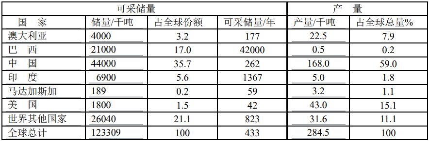 2021年底世界各國(guó)稀土金屬的可采儲(chǔ)量和產(chǎn)量