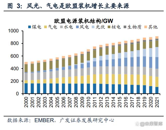 從裝機(jī)變化趨勢來看:歐盟煤電機(jī)組陸續(xù)關(guān)停,風(fēng)光、氣電是裝機(jī)增長主要來源。
