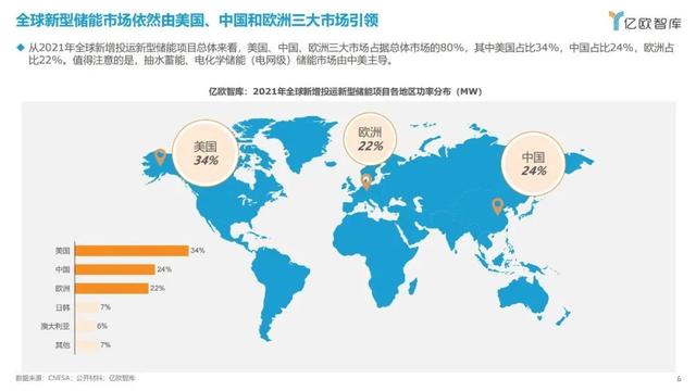 電能儲能包含機械、化學及電磁等眾多技術路線,抽水蓄能仍是主要儲能方式,美國、中國和歐洲依然引領全球新型儲能市場。