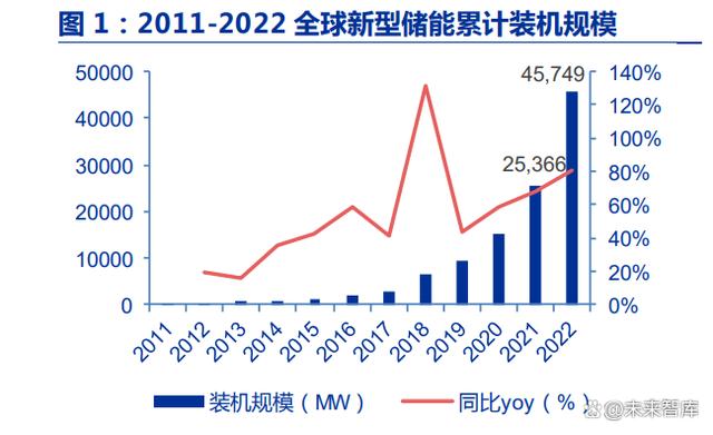 1.1 儲(chǔ)能裝機(jī)快速增長(zhǎng),鋰電池儲(chǔ)能發(fā)展迅速