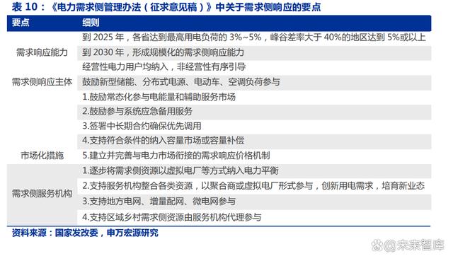 此外,本次政策還提出要鼓勵(lì)需求側(cè)響應(yīng)主體常態(tài)化參與各類電能量、輔助服務(wù)市場、 應(yīng)急備用服務(wù)、容量市場或容量補(bǔ)償?shù)仁袌?,豐富收益來源,并建立完善與電力市場銜接 機(jī)制。